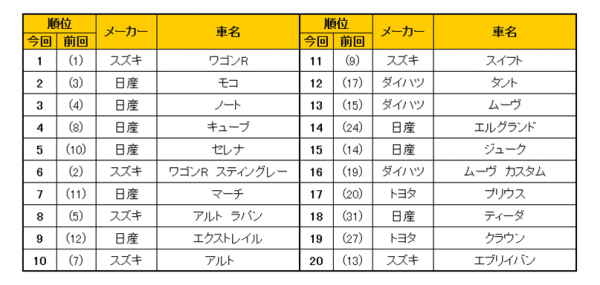 2位は先月3位だったモコが、3位は先月4位だったノートがそれぞれ順位を上げ、ランクインしました。