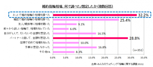 ■婚約指輪相場「ネットで調べた(32.2%)」がトップ