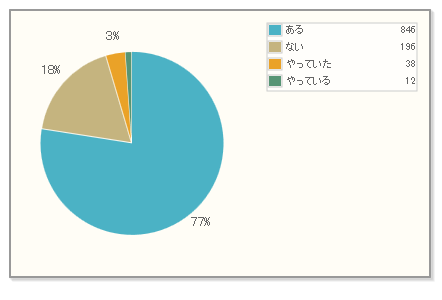 ある 78%(868名)ない 18%(198名)やっていた 4%(40名) やっている 1%(13名)