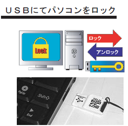 市販の廉価なUSBメモリをパソコンの鍵にします。
