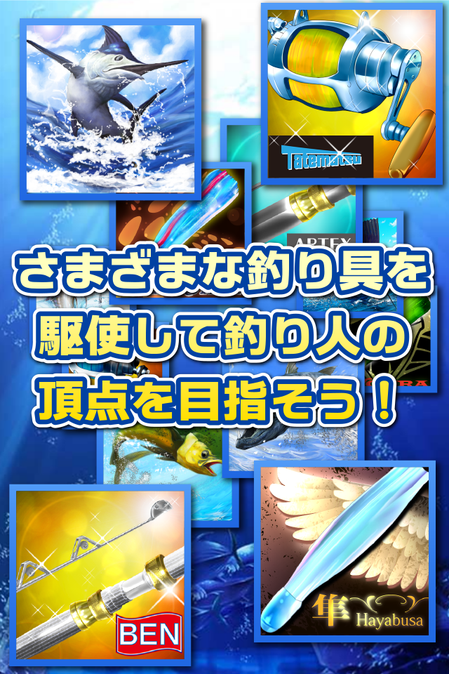 本作は釣りの中でも自らの船で大海原を巡る「トローリング」をフィーチャーした新感覚釣りゲームです。プレイヤーは、様々なミッションをクリアしていく「ステージクリアモード」でレベルを上げ、釣り道具を揃えて大会に参加します。より上位クラスの大会や、大物釣りにチャレンジするイベントに参加することで、強力なルアーを入手して、大会で一発逆転を狙うこともできます。現実世界では敷居の高いトローリング大会が簡単操作で楽しめ、仲間とチームを結成することもできるなど、新感覚の釣りゲームとなっております。
