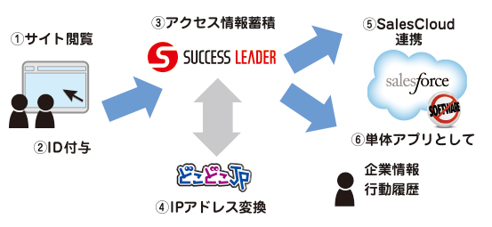 Salesforceをお使いの企業様は、SUCCESS LEADERを追加アプリケーションとしてインストールし、同じ環境の中でWEBサイトを起点とした営業プロセスを一元管理することが可能です。