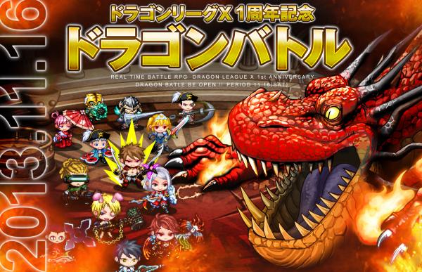 iPhoneアプリ「ドラゴンリーグX」のメインインベント『ドラゴンバトル』が2013年11月16日(土)に開催されます。