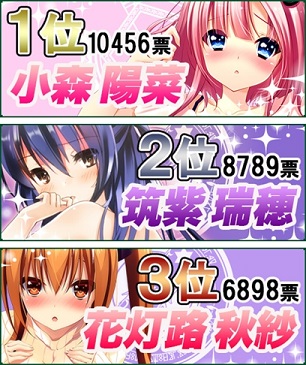 期間中の総投票数は71,455票に達しました。上位3キャラクターの順位および投票数は下記の通りです。