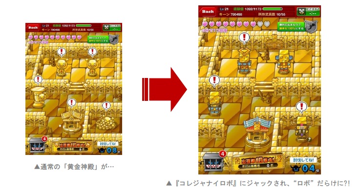 本年10月より、約1か月にわたって1周年記念キャンペーンを実施してまいりましたが、この度、本キャンペーンのラストを飾るイベントとして、スペシャルコラボを実施!「ドラゴンリーグX」でおなじみのイベント「黄金神殿」に、人気玩具『コレジャナイロボ』が登場いたします!