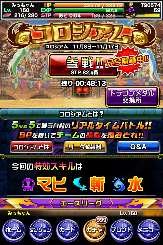コロシアムでは、ランキングやバトルの成績に応じてドラゴンメダルが獲得できます。ドラゴンメダルは、ドラゴンメダル交換所にて様々なカードやアイテムと交換することができます。