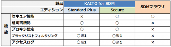 ■KAITO for SDM提供機能および他ブラウザとの機能比較