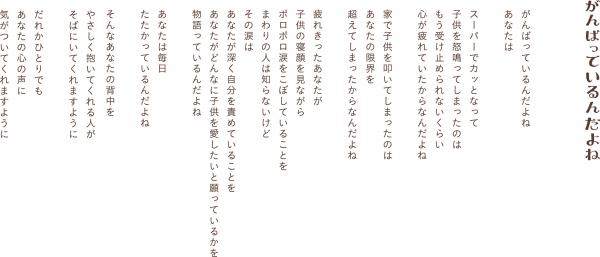 また、女性のみならず自分の母親や出産を控えた奥様に贈りたいという男性読者の支持も集めていることから、現在、11月22日の“いい夫婦の日”に奥様への贈り物としておすすめしています。呼びかけに応えた都内の書店では贈り物用のラッピング販売を実施。さらにクリスマスでの拡売を目指しています。担当者によると、「夫婦間でこの詩が読まれるようになれば、子育ての現場の想いを共有することができ、家族の絆の醸成につながる。最終的には、そこを目指したい。」として、“いい夫婦の日”やクリスマスのギフト需要創出に向けて取引先書店に呼びかけていきます。