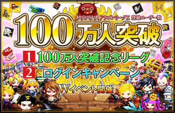 ◆100万人突破記念リーグ :2013年11月25日(月) ~ 2013年12月6日(金)