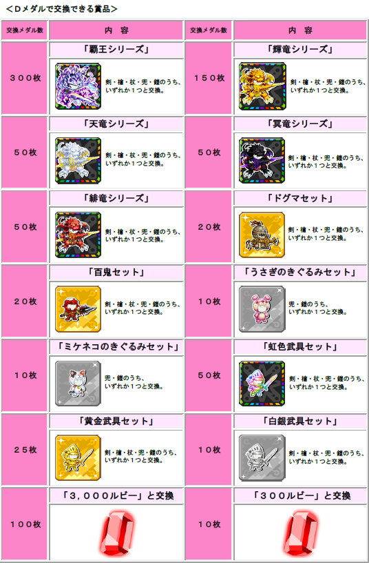 ※リーグ報酬のドラゴンメダルももちろんあります!ドラゴンメダルは一定数集めると好きな武具と交換できます。 各級・順位別のリーグ報酬詳細は、ゲーム内でご確認ください。