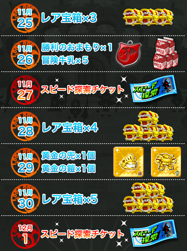 11/25(月):レア宝箱x3個