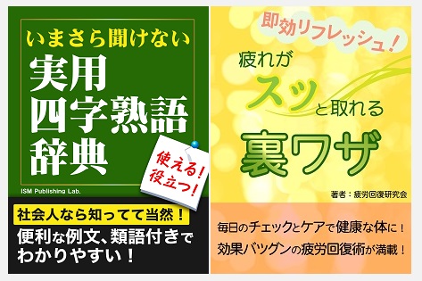 ゴマブックス株式会社(所在地:東京都港区、代表取締役社長:赤井仁)は、11月18日(月)より、Kindleストア、Google Play、楽天koboイーブックストア、ならびにYahoo!ブックストアにて、電子書籍『いまさら聞けない 実用四字熟語辞典』『即効リフレッシュ 疲れがスッと取れる裏ワザ!』の配信を開始しました。社会人として最低限知っておきたい常識や疲労回復のコツを身につけたい方におすすめです。