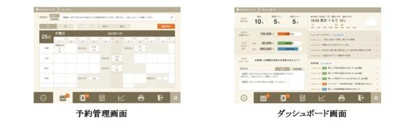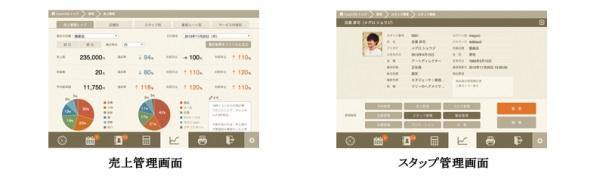 予約管理/レジ管理/カルテ管理/スタッフ個人情報編集/ダッシュボード(現在の予約/売上状況や連絡事項のほか、お客様とのコミュニケーションに役立つ天気やニュースなどの情報を確認)