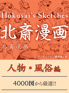 本書では、全15編から成り、約4000の浮世絵が収録されている『北斎漫画』から「人物・風俗」を題材にした作品を中心にまとめている。
