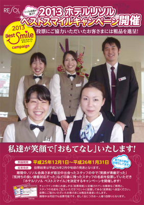 (写真)「くつろぎ」サービスが好評のホテルリソルでは、この冬『ベストスマイルキャンペーン』を実施します