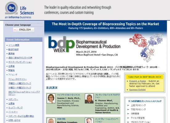 学会:「Biopharmaceutical Development & Production Week 2014 -バイオ医薬品開発および生産ウィーク2014年」
