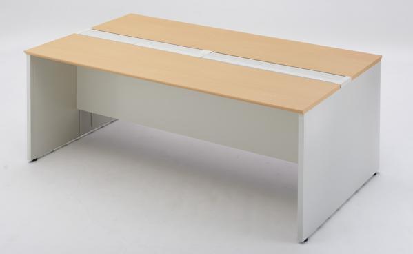 デスク本体の凹凸をなくし周辺什器との親和性を高めました。デスクは「ベースセット」と「ジョイントセット」があり、最大 4,800mm(最大連結数:2連結)までデスクスペースを広げることができます。