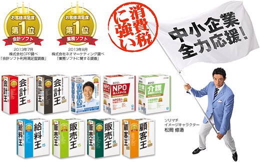 この度の会計王15シリーズでは、「消費税対策に強い会計王15シリーズ」を製品コンセプトとしており、 消費税改正でお困りの中小企業・個人事業者の方に向け、新消費税対応版に加え、中小企業全力応援キャンペーンなど 特別なサポート体制をご提供し、全力でご支援させていただきます。