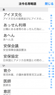 ●iOS版オリジナル機能として法律の分野別一覧が確認できる