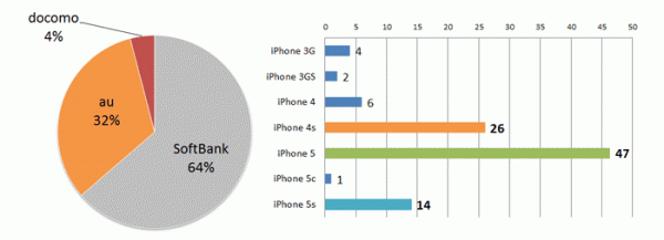■ iPhoneユーザーシェアdocomoの利用者はわずか4%! iPhone機種の中ではiPhone5利用者が46%でダントツ!