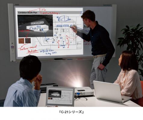 プロジェクタ投影に適したスクリーンシートを採用した「C-21シリーズ」は、マーカーで書き込んだ内容と投影画面とをパソコン上で合成保存(オーバーレイ)することができる上位モデルです。