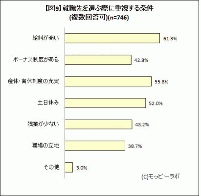 図表参照:【図9】就職先を選ぶ際に重視する条件(n=746)単純集計