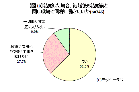 図表参照:【図10】結婚した場合、結婚前と同じ職場で働きたいか(n=746)単純集計