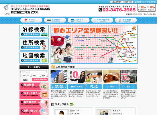 この度『エステートトーワFC渋谷店株式会社プロハウス』が運営するホームページは、"都心エリア全駅取扱い!!"をコンセプトに、渋谷などの賃貸物件情報を扱うホームページとなっております。