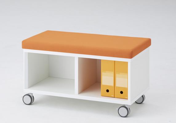 収納機能を備え、空間に彩りを加える「スツールワゴン」(クッションカラー:ブラック、オレンジ、レッド、イエローグ リーン)は、対面用・片面用が選べます。空間の仕切りとしても機能する「オープンストレージ」は、執務シーンはもちろん、リフレッシュやコミュニケーションシーンでも活躍します。