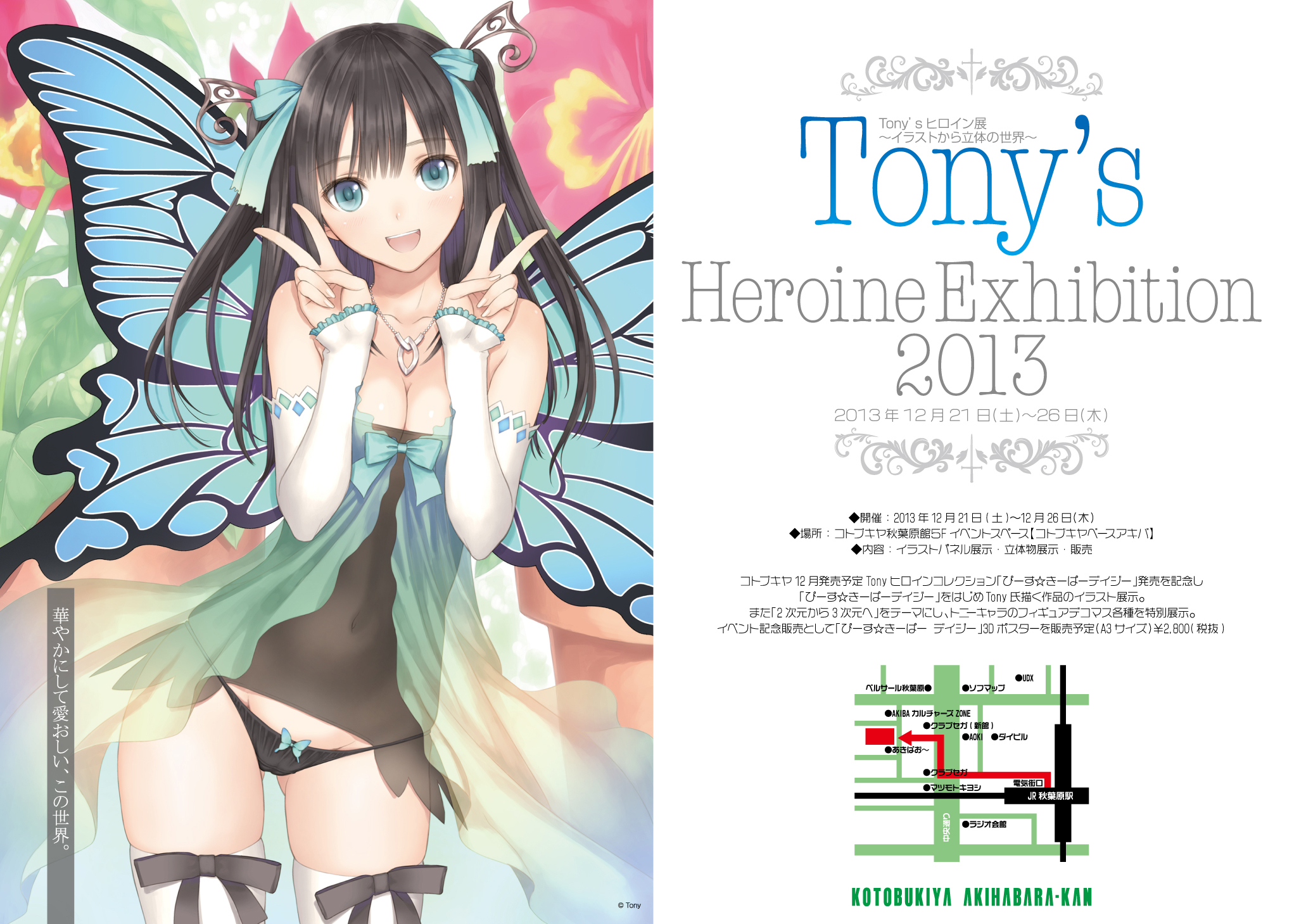 ホビーメーカーコトブキヤの直営店「コトブキヤ 秋葉原館(東京都千代田区外神田1-8-8)5階[コトブキヤベース・アキバ]」にて、2013年12月21日(土)~12月26日(木)の6日間イラストレーターTony氏のイラスト展示会を開催します。