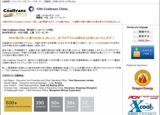 会議:「12th Coaltrans China - 第12回コールトランス中国」