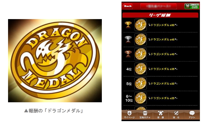 ※本大会報酬「ドラゴンメダル」は、一定数集めれば好きな武具と交換できます!各級・順位別のリーグ報酬詳細は、ゲーム内でご確認ください。
