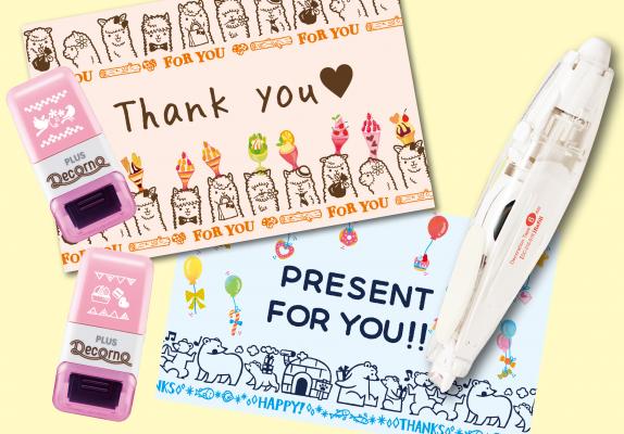 色を塗ったり文字を書いたり、柄同士を組み合わせれば、気持ちが伝わるカードやラッピングに。デコレーションローラー「デコルノ」や「イロドリ デコルノ」※(数量限定スイートパターン6種類を1月16日発売予定)と組み合わせて、オリジナリティ溢れる自分だけのアレンジを追求することもできます。