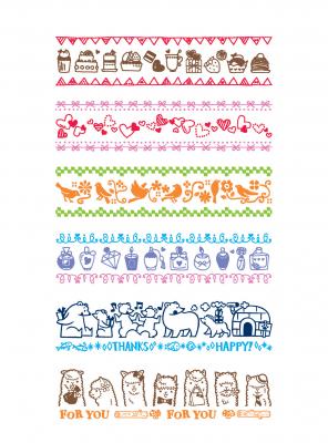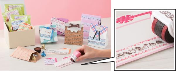 スタンプしてから色鉛筆などで色を塗ったり、メッセージを書きこんだり、デコレーションテープ「デコラッシュ」※1(数量限定2014年スイート柄6種類を1月16日発売予定)と組み合わせたり!他にも、無地のラベルをデコレーションしてオリジナルシールを作成するなど、アレンジを加えることで表現の幅が広がり、“わたしデコ”を手軽にお楽しみいただけます。