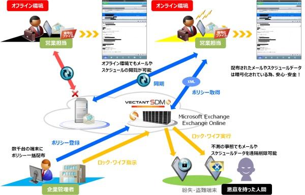 丸紅アクセスソリューションズの提供する「VECTANT SDM」は、「コンテンツ(データファイル)配信機能」や「VPN機能」を備え、スマートデバイスを業務活用するためのMDM(Mobile Device Management)として、さまざまなニーズにお応えしてきましたが、今回、NitroDeskの提供するグループウェアアプリ「TouchDown」との連携により、スマートデバイスからメール、スケジュールの閲覧がより安心、安全にご利用頂くことが可能となりました。