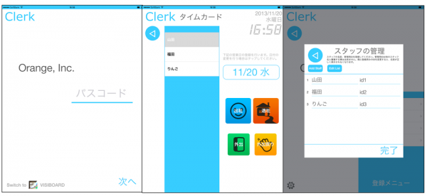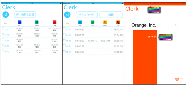 Clerkは、iPadで利用する事の出来る、タイムカード・タイムスタンプアプリです。