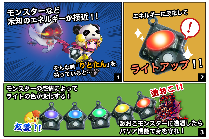 「りとたん」の原理は未知なるエネルギーを探知すると「りとたん」がライトアップし、