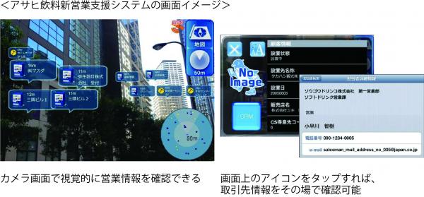 営業担当は外回りの際に同アプリを使い、地図情報とARを組み合わせた画面から担当エリア内のどの場所に自社の自販機が設置されているかなどの営業関連データを、視覚的に引き出すことで、“正確な営業情報”と“タイムリーな営業ステータス”の把握が可能になりました。