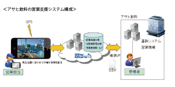 アサヒ飲料の新営業支援システム構築には、TISの情報配信プラットフォーム「SkyWare」の新シリーズ「フィールド業務支援サービス on SkyWare」を活用して構築を行いました。
