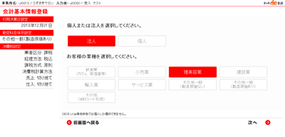 新バージョン13.7.0では、6つの業種別勘定科目体系を用意しました。初期設定の基本情報登録時に、ご自身の業種を選ぶだけで、選択した業種に特化した補助科目を網羅した勘定科目一覧が自動反映されます。