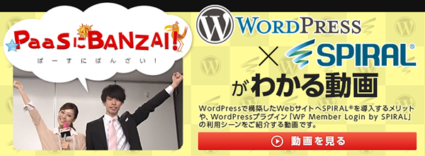 株式会社パイプドビッツ(本社:東京都港区、代表取締役社長CEO:佐谷宣昭、証券コード3831)は、2013年12月20日に、本格的なビジネスサイトをWordPressで構築したいWeb制作会社や開発会社、サイトオーナーの開発者向けに、WordPressで構築したWebサイトに情報資産プラットフォーム「スパイラル(R)」を導入するメリットやWordPress公式プラグイン「WP Member Login by SPIRAL」利用シーンを紹介する「WordPress×SPIRAL(R)がわかる動画」を公開しましたので、お知らせいたします。