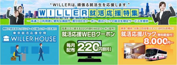 ・PCサイト:http://travel.willer.co.jp/campaign/shukatsu/coupon.php