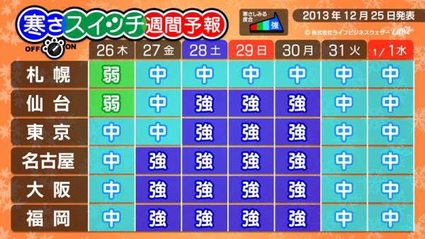 最終回 主要都市 寒さスイッチ週間予報