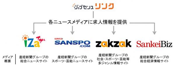 今回の取り組みにより、新聞社系最大手の株式会社産経デジタルが運営するニュースサイト「SANSPO.COM(http://www.sanspo.com/)」や「ZAKZAK(http://www.zakzak.co.jp/)」などにおいて、「お仕事情報」という新カテゴリが各ニュースサイトのメニューバーに設置されることになり、各ニュースサイトのユーザーに対して、ジョブセンスリンクによる求人情報の提供が可能となります。これまでジョブセンスリンクを利用されたことのない産経デジタル運営サイトのユーザーにも、幅広くかつ容易にご利用いただけるようになるほか、ジョブセンスリンクのユーザーベースが更に拡大することで、求人掲載企業様への応募数増加が期待できます。