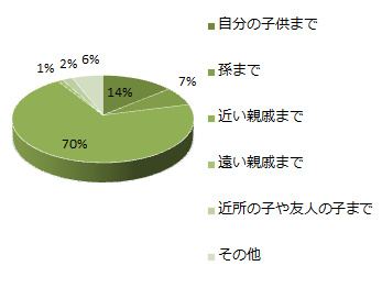 渡す範囲はどこまでか尋ねたところ、最も多かったのは「近い親戚」で、その数は7割を占めました。新年は、親戚で集まることが多く、その際集まった親戚に渡す事が多いと考えられます。また、回答者の年齢から、孫のいる方よりも、ご自身のお子様や親戚の子供にお年玉をもらう年齢の子が多いとも考えられます。少数派ではありますが、近所の子供や友人の子供まで渡す方もいらっしゃる様です。