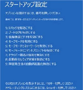 セーフモードでも起動できない重度の障害でもスタートアップ設定画面さえ表示するならばここからシステムの復元機能を呼び出しメンテナンスします。