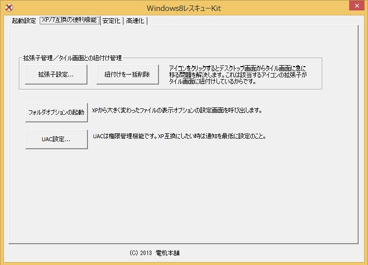 2.スタートボタンの復活とXP/VISTA/7との互換環境の強化