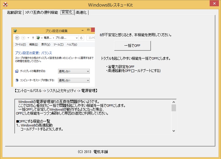 Windows8を使用していて不安定を感じたならばこれらのOFFを推奨します。