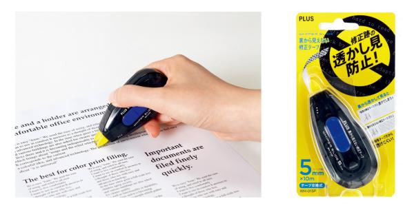 プラス株式会社(東京都港区 代表取締役社長 今泉公二)は、修正テープの裏面に特殊文字パターンを印刷し、修正前の文字を紙の裏から見えにくくした「裏から見えない修正テープ」に、新本体カラー3色を追加して2014年1月24日より発売します。