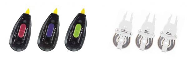 メーカー希望小売価格(税抜)は、本体が各300円、交換テープが各180円です。